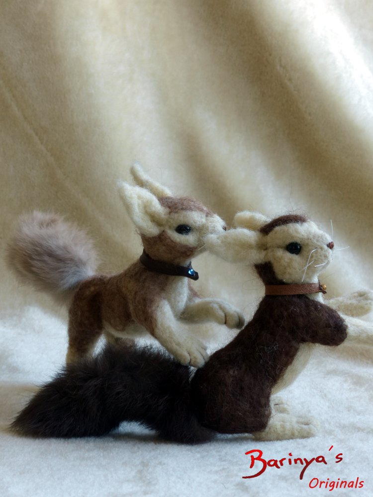 Die Eichhörnchen wurde trocken mit der Filz-Nadel gefilzt. Sie haben eine Körperlänge von etwa 20cm.