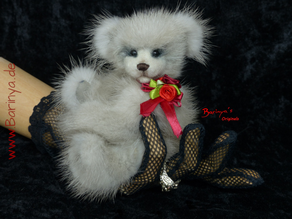 Lil ist ein kleines Bärchen aus echtem, feinen Silber-Nerz mit einem nadelgefilztem Gesicht