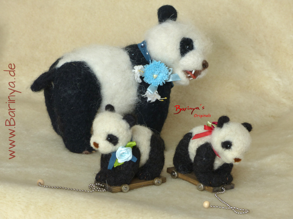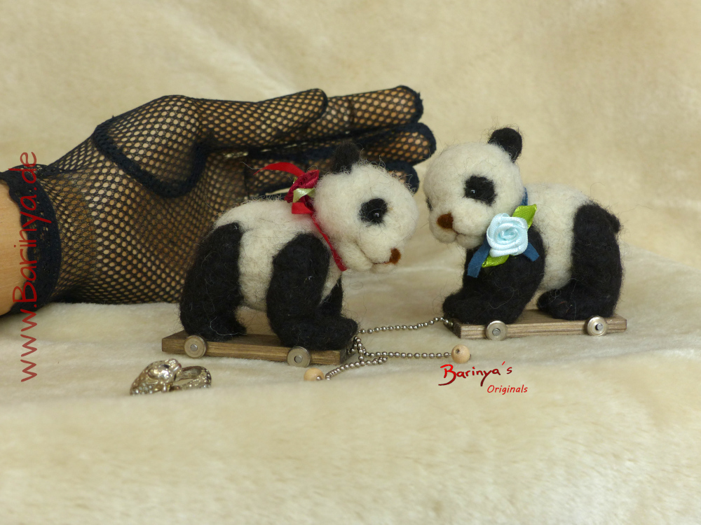 Diese zwei kleinen Panda-Bärchen auf Rädern sind nadelgefilzt und wirklich ziemlich klein. Aber ich habe noch kleinere gemacht :o)
