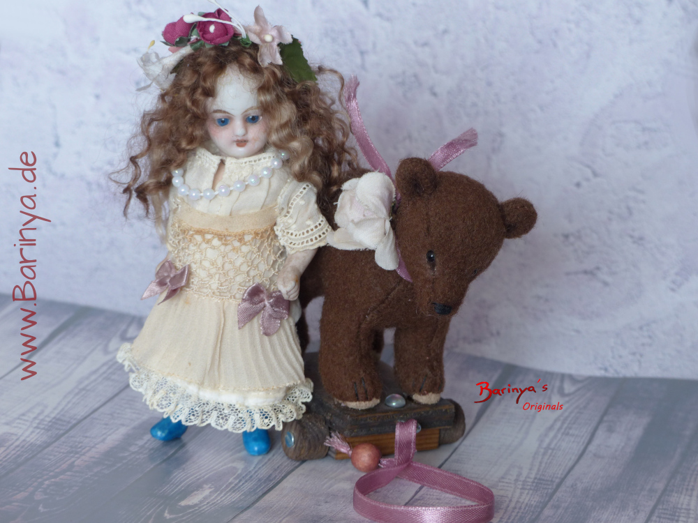 Anderes: Räder und Stand sind aus Holz, Halsband aus Band mit antiker Stoffblüte