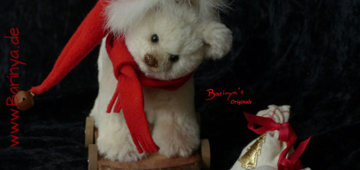 Weißer Bär auf Rädern Puppen- und/oder Bärenspielzeug ca. 13cm hoch Weihnachten!? Dieser kleine weiße Bär hat sich schon festlich gekleidet...
