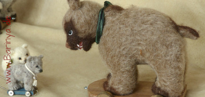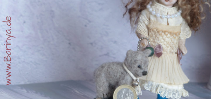 Miniatur Räderbär grau Puppen- und/oder Bärenspielzeug ca. 5cm hoch Eines meiner aktuell kleinsten gefilzten Bärchen auf Rädern. Wie klein sie...