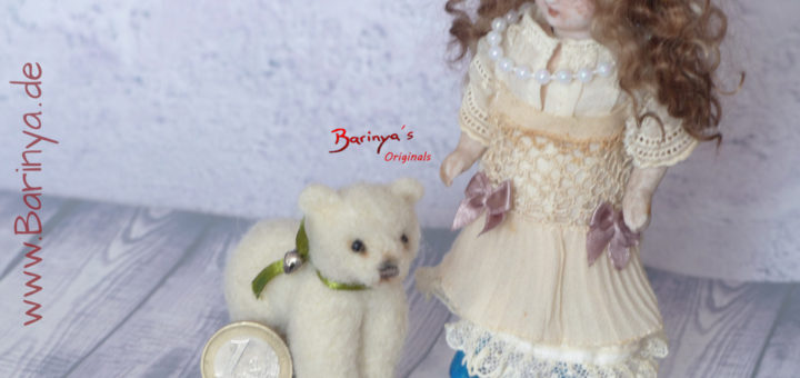 Miniatur Räderbär weiß Puppen- und/oder Bärenspielzeug ca. 6cm hoch Eines meiner aktuell kleinsten gefilzten Bärchen auf Rädern. Wie klein sie...
