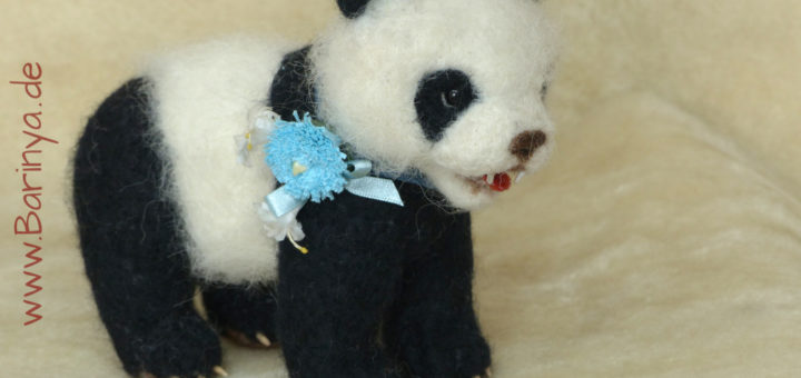 Ein Herz für Dich – Panda A Heart 4U sitzend 15cm hoch Dieser nadelgefilzte Pandabär hat ein geöffnetes Schnäutzchen mit...